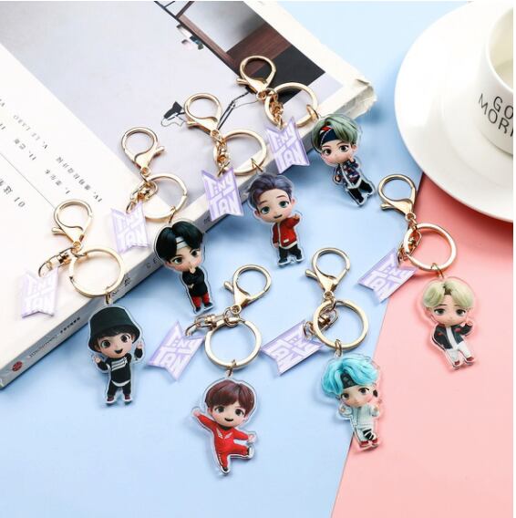 KpopBTSアクリルキーホルダーBT21かわいい漫画小さなTANキーホルダーペンダント