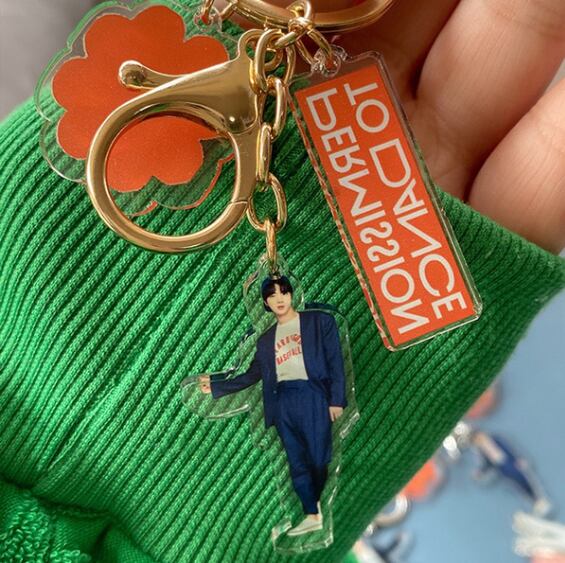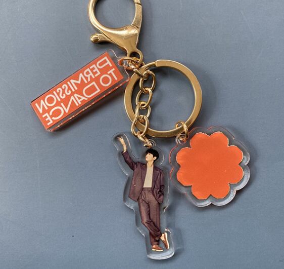 防弾少年団バターがキーホルダーを踊る許可アクリルゴールドキーリングかわいいクリエイティブペンダント